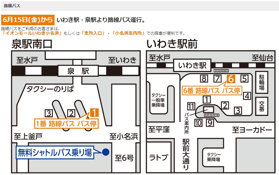 おおぐまくん در توییتر イオンモールいわき小名浜が6 15にオープン 6月いっぱいの予定で泉駅から無料送迎バスを運行する他 泉駅 いわき駅 からの路線バスがモールに乗り入れ 泉駅からは直行便も設定あり Https T Co Qxet7agemu
