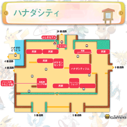 ピカブイ ハナダシティのマップと入手できる道具 ポケモンレッツゴー ゲームエイト