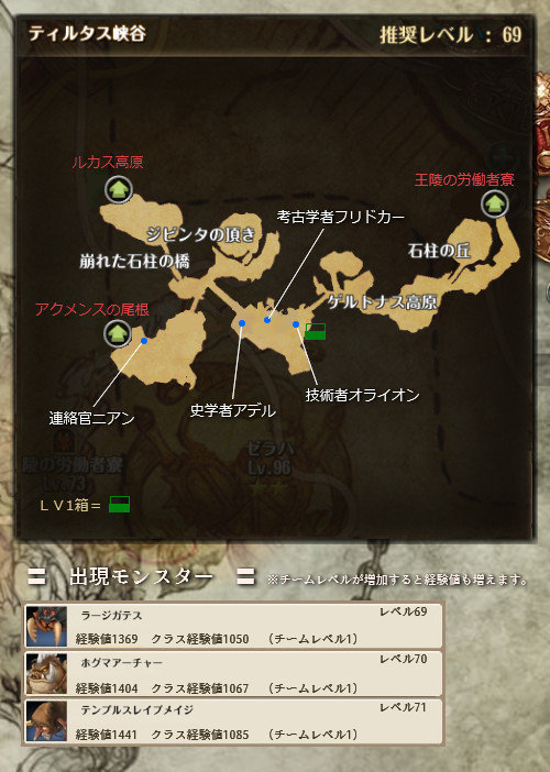 Tos Lv 67アクメンスの尾根 コレクション モブ分布 世界なんて愛してる